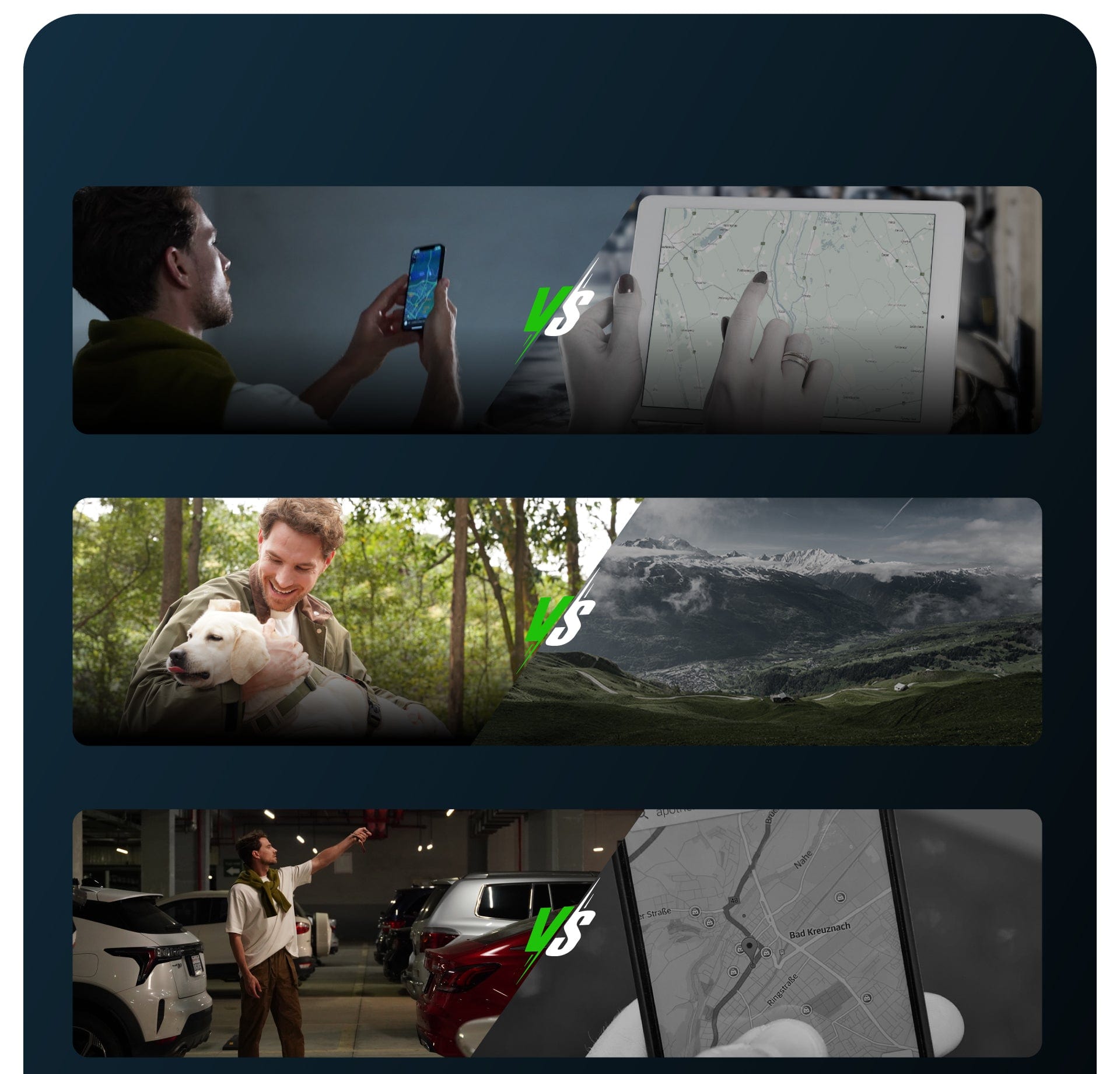 Traditional trackers often struggle in complex environments within the last 100 meters. But not ours! Our innovative active radar search feature guides you to your target even without GPS. With our tracker, you'll find what you're looking for no matter how challenging the terrain.