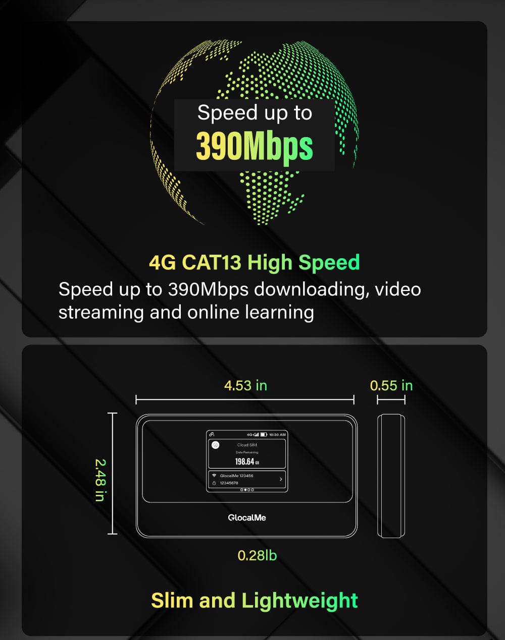 Download Speed up to 390Mbps, Nearly three times the speed of previous-generation technology. Always connect to the best 4G internet.