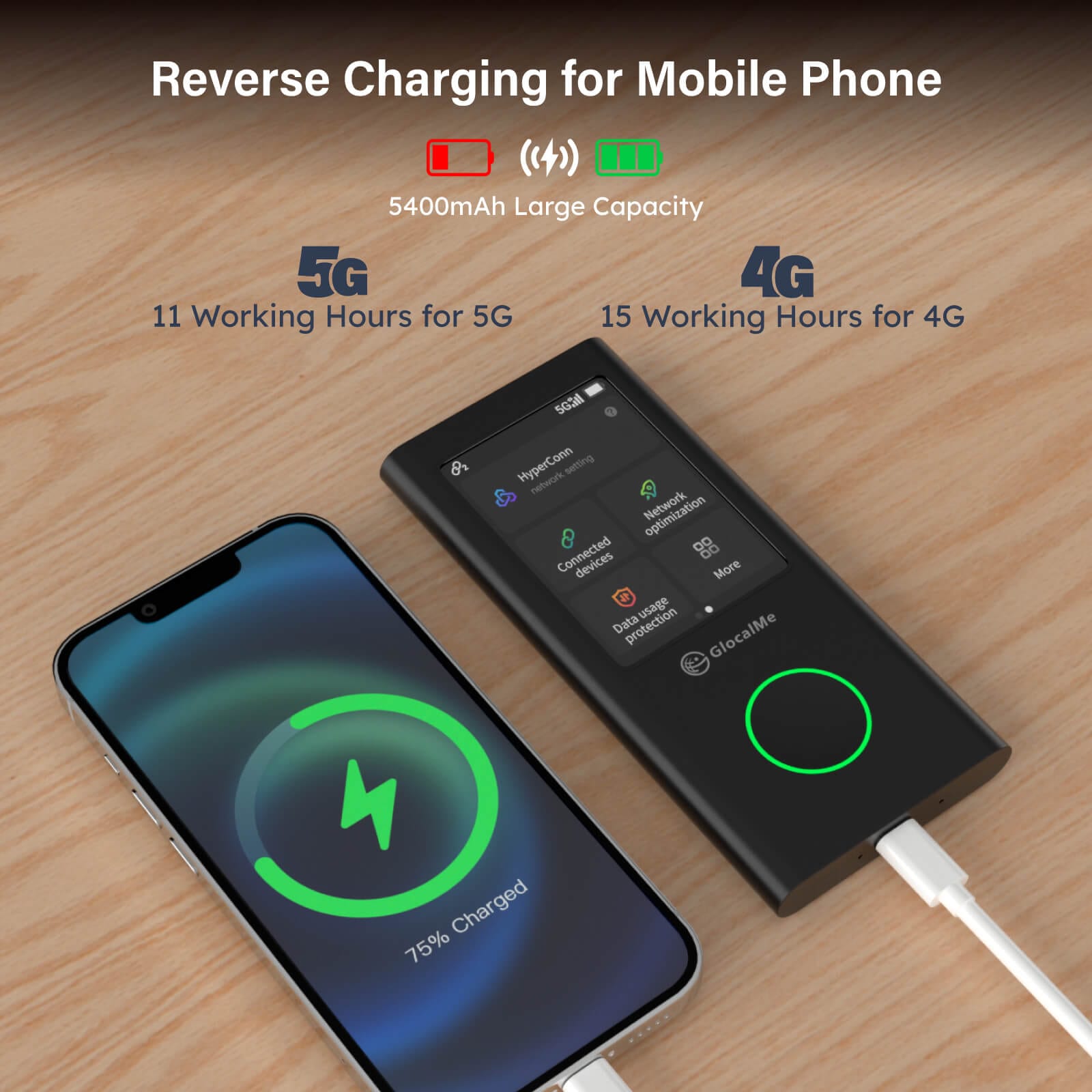 This 5G WiFi device is equipped with a 2.4-inch LCD touch screen, providing the ability to monitor data usage, signal strength, connected devices, network settings, etc